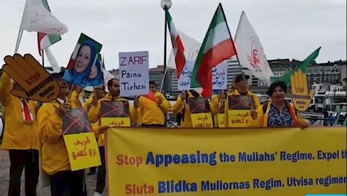 تظاهر إيرانيون مؤيدون لمنظمة مجاهدي خلق في فنلندا – هلسنكي، احتجاجًا على وجود وزير الخارجية الإرهابي لنظام الملالي جواد ظريف.