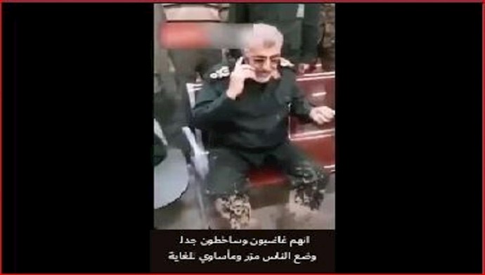 فيما يلي مكالمة هاتفية عن أحد قادة قوات الحرس الإيراني تناول فيه الوضع المأساوي للمنكوبين بالسيول في مدينة «بلدختر» بمحافظة لورستان واستياء المواطنيين العميق عن هذا الوضع: