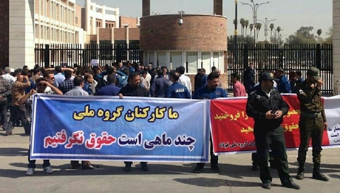 «وفقا لتصريحات عمال المصنع، وبما أن صاحب العمل في القطاع الخاص لم تكن لديه القدرة المالية على دفع رواتب العمال ، في مايو 2018 ، غيرت السلطات ملكية هذه الوحدة الصناعية الكبيرة ، في حين ظلت المشكلات على حالها، فمن جهة تدعي السلطات المحلية في المحافظة أن ملكية المجموعة الوطنية قد تم منحها إلى أحد البنوك، ولا يتحمل المالك السابق أي مسؤولية في المصنع، ومن جهة أخرى ، يدّعي صاحب العمل السابق، بأنه لا يزال يملك مجموعة الأهواز الوطنية لصناعة الصلب والعمال، وبقي العمال حيارى بشأن تحقيق مطالباتهم.