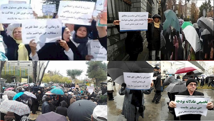 كما في مدينة مشهد تحشد متقاعدون أمام مبنى منظمة التخطيط والموازنة في المدينة للاحتجاج على تدهور وضعهم المعيشي وكذلك تدني رواتبهم.
