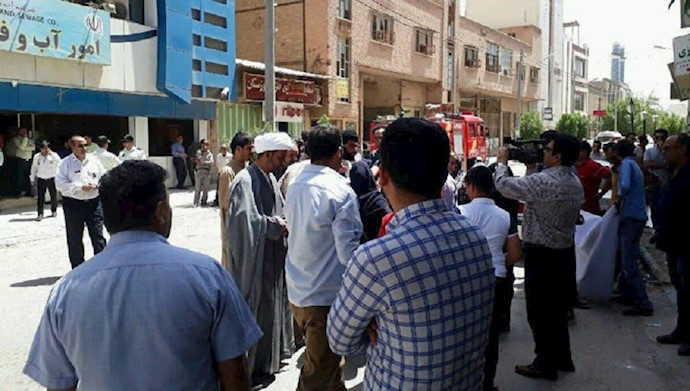 تجمع احتجاجي لمواطنين في مدينة عبادان أمام مصلحة الماء والمجاري