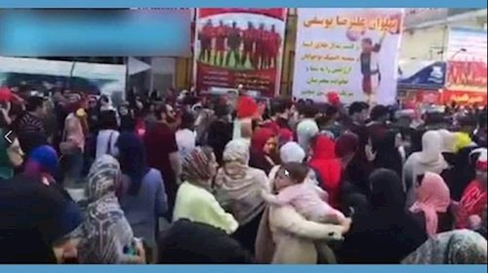 وفي هذا التجمع احتج المواطنون بشدة علی التعامل الوحشي من قبل عناصرقمع النظام مع إحدی الفتيات.