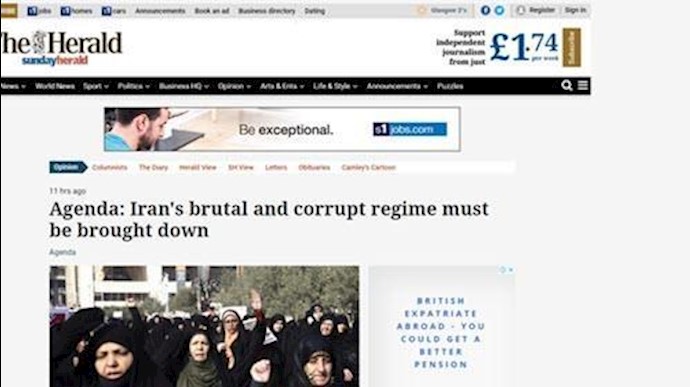 نشر موقع «ساندي هرالد» البريطاني 8 يناير2018 مقالا من استرون استيفنسون بشأن إنتفاضة الشعب الإيراني يقول: علي خامنئي يتهم أعداء إيران بالانتفاضة في بلاده.انه خطأ. الأفراد مثلي، الذين يدعمون المتظاهرين الشجعان الذين يخاطرون بحياتهم في القری والمدن، ليسوا أعداء لإيران. علی العکس من ذلک، نحن أصدقاء إيران والشعب في ضيقها. نحن أعداء المستبدين الدينيين الذين وضعوا إيران في مستنقع الحرمان واليأس علی مدی 39 عاما من القمع والفساد.
