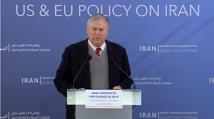 وحث النائبان خلال الندوة التي حملت عنوان “إيران: آفاق التغيير في عام 2018” الولايات المتحدة والاتحاد الأوروبي علی الوقوف إلی جانب الشعب الإيراني ورغبته في إقامة الديمقراطية وحقوق الإنسان في إيران وشددا علی أن هذا لا يمکن تحقيقه “إلا بعد إزالة الدکتاتورية الدينية”.