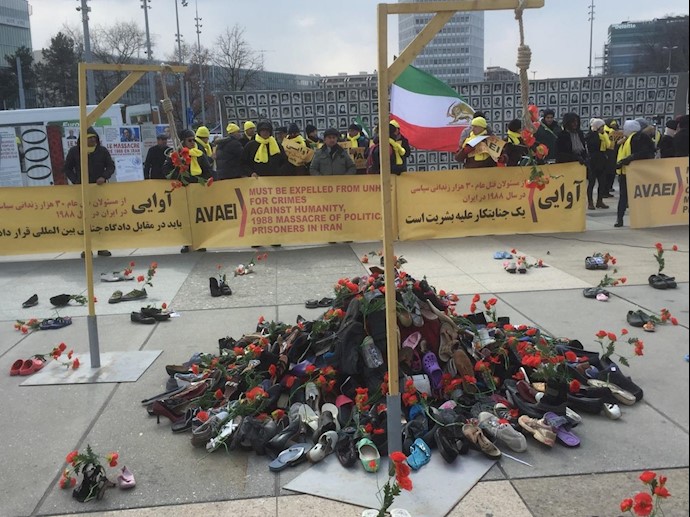 تظاهر اليوم الثلاثاء أبناء الجالية الايرانية فی سويسرا أنصار المجلس الوطنی للمقاومة امام مقر الامم المتحدة فی جنيف احتجاجاً حضور علي رضا آوايي وزير عدل الملالي فی مجلس حقوق الانسان.