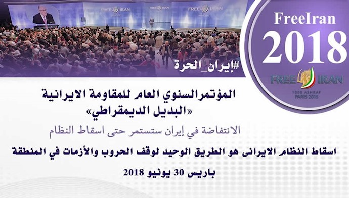 المؤتمر السنوي للعام للمقاومة الإيرانية هو ملتقي كبير سيعقد في الثلاثين من حزيران/ يونيو من هذا العام 2018في باريس وذلك من أجل التضامن مع الشعب الإيراني والمقاومة الإيرانية لتحقيق الحرية والديمقراطية في إيران واستباب السلام والاستقراروعلاقات الأخوة في المنطقة.