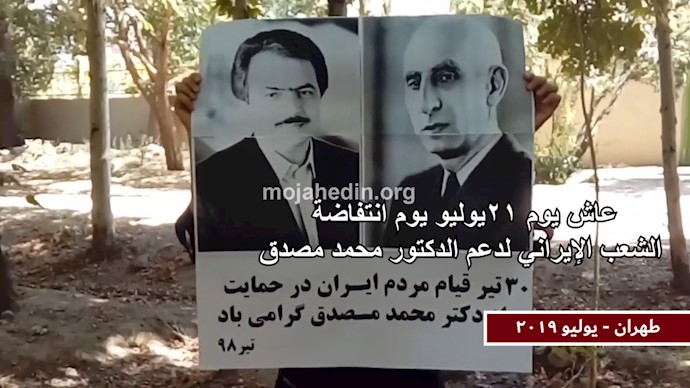 رفع أحد أنصار مجاهدي خلق في طهران صورتين كبيرتين لمسعود رجوي والدكتور محمد مصدق كتب تحتها عبارة: «عاش يوم 21يوليو يوم انتفاضة الشعب الإيراني لدعم الدكتور محمد مصدق»