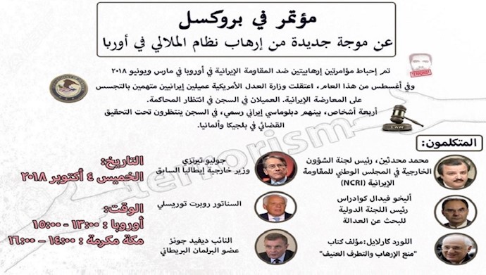 وسيتم عقد مؤتمر في بروكسل عن موجة جديدة من إرهاب نظام الملالي في أوروبا سيشارك فيه شخصيات بارزة.