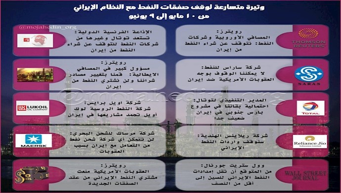 وتيرة متسارعة لوقف صفقات النفط مع النظام الإيراني من 10 مايو إلى 9 يونيو