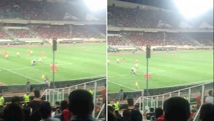 ملعب آزادي(الحرية) في طهران.. متفرّجون يرددون شعار «ليرحل الملالي لا تنفعهم المدفع والدبابة» -17 آب 2018