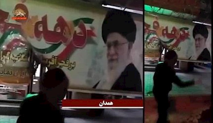 إحراق وتمزيق لافتات تحمل صورة مشترکة لخامنئي وخميني في مدن إيران خلال الاسبوع الماضي-فبرایر 2018