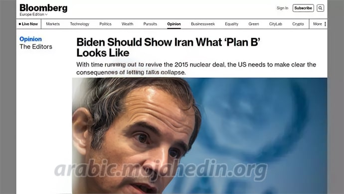 کتب موقع بلومبرغ یوم 16 یونیو حول الانسداد ووقف المفاوضات النووية مع نظام الملالي تحت عنوان “على بايدن أن يُظهر لإيران كيف تبدو “الخطة ب “: