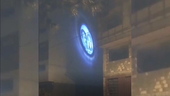 إلقاء صورة ضوئية كبيرة لقيادة المقاومة الإيرانية في اصفهان