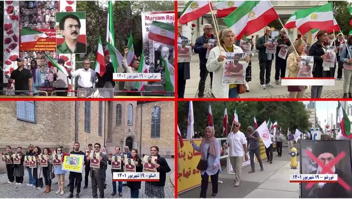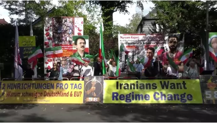 فيما ردد المتظاهرون شعارات: الموت لخامنئي ورئيسي واللعنة على خميني /شعب إيران يريد محاكمة الجلادين / إيران دمرها الشاه والملالي / عدو شعب إيران الشاه والملالي / ينهبون القتل وسجن الشاه والشيخ شاه والشيخ / الموت لخامنئي ورئيسي وعاشت وحدات المقاومة.