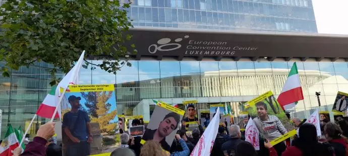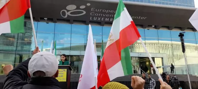 تظاهرة الإيرانيين في لوكسمبورغ بالتزامن مع اجتماع وزراء خارجية الاتحاد الأوروبي