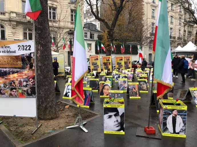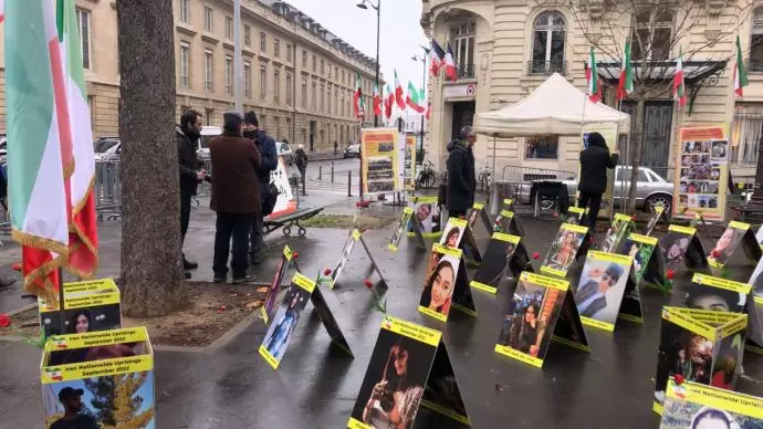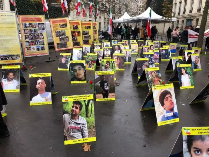 في إطار عمل أنصار منظمة مجاهدي خلق في المدن الأوروبية، عُرضت صور شهداء الانتفاضة على لافتات على البساط الأحمر، وكأنها بساط من الدماء، وعبر المواطنون عن تضامنهم وتأييدهم للشعب والانتفاضة الوطنية في إيران.