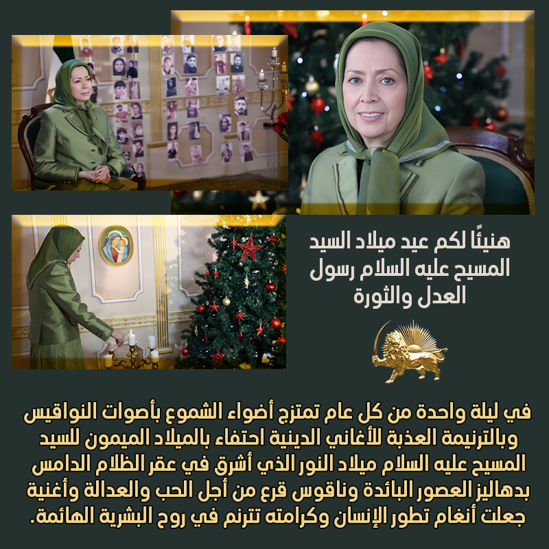 مبارك للجمیع عيد ميلاد عيسى بن مريم، يوم ميلاد جديد للبشرية المكبلة، وعلى جميع أتباع عيسى المسيح الرسول الأعظم للتوحيد.