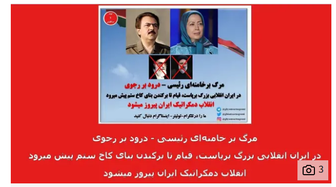 وعرضت صورهم تحت صور شخصيتين إيرانيتين معارضتين هما مسعود ومريم رجوي – مؤسسا مجاهدي خلق الإيرانية.