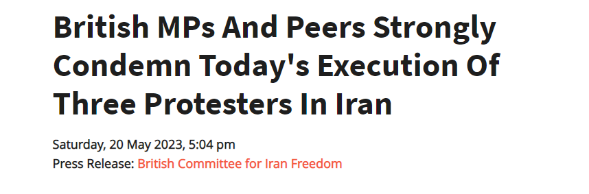 أدانت اللجنة البريطانية لحرية إيران بشدة إعدام ثلاثة متظاهرين في إيران في بيان صدر في موقع   اللجنة البريطانية لحرية إيران. وجاء في البيان: