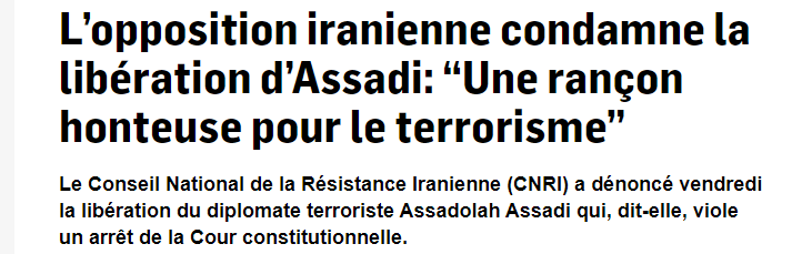 المعارضة الإيرانية تدين إطلاق سراح الأسدي «فدية مخزية للإرهاب»