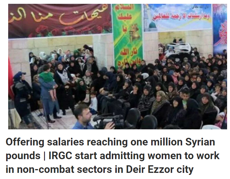 بعرض رواتب تصل إلى مليون ليرة سورية بدأ الحرس الإيراني قبول النساء للعمل في القطاعات غير القتالية في مدينة دير الزور