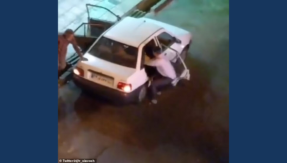 بينما تقوم طهران بقمع حقوق المرأة، لحظة صادمة حينما يسحب [الباسيج] امرأة من السيارة ويضربها في وجهها… قبل أن تنتقم ضحيتها الشجاعة منه.