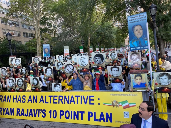في 19 سبتمبر، يوم الثلاثاء، متزامنا مع انعقاد الاجتماع السنوي للجمعية العامة للأمم المتحدة، نظم الآلاف من أنصار المقاومة وأنصار منظمة مجاهدي خلق الإيرانية مظاهرة كبيرة جدًا في نيويورك للتعبير عن غضبهم واشمئزازهم للعالم من وجود أحد الجلادين الرئيسيين وقتلة الشعب الإيراني في مقر الأمم المتحدة.