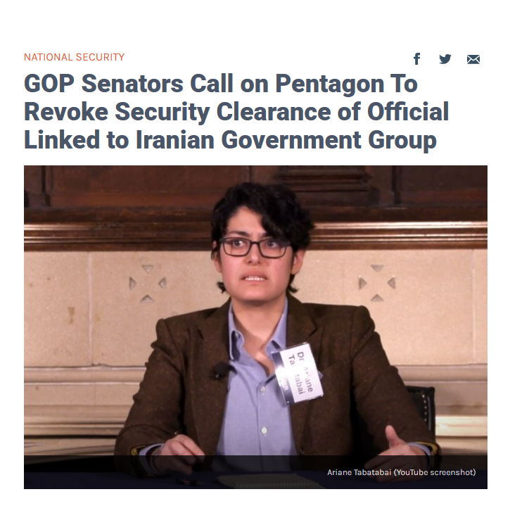 طالب 31 عضوًا في مجلس الشيوخ الأمريكي، في رسالة إلى لويد أوستن، وزير الدفاع، بالتعليق الفوري للتصريح الأمني للعميلة المتسللة لنظام الملالي في البنتاغون.