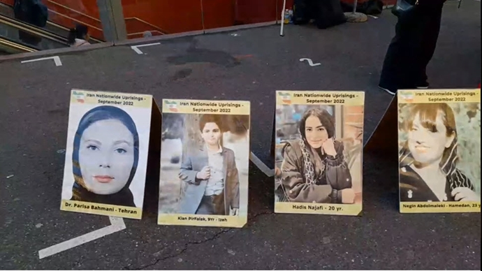 وفي هذا العمل عُرضت على المواطنين صور شهداء الانتفاضة الشعبية للشعب الإيراني.