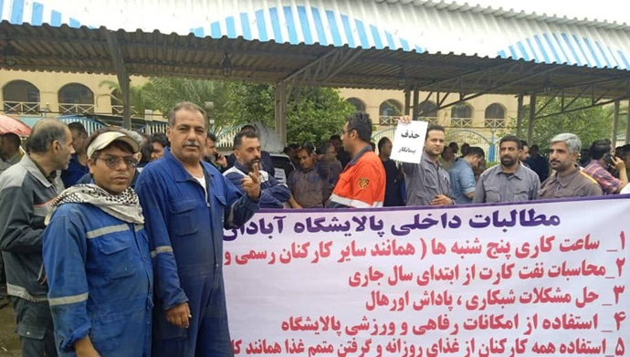 تجمعات احتجاجية لعمال مصفاة نفط ٔآبادان والعاملين في النفط والغاز في آغاجاري