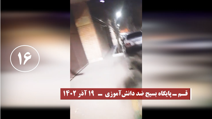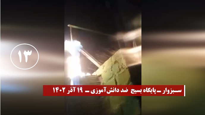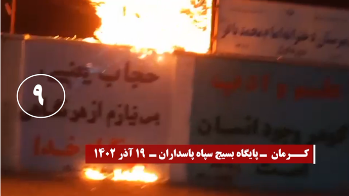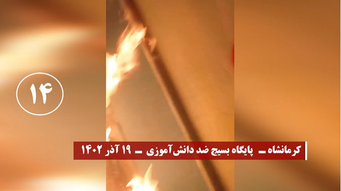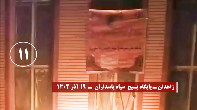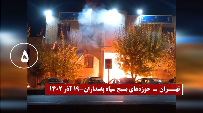 واستهدف شباب الانتفاضة خلال نشاطاتهم الخارقة لأجواء القمع مراكز الباسيج التابعة للحرس الإيراني وأجهزة أخرى للنهب والقمع لنظام الملالي بنيران مشتعلة في مدن طهران العاصمة، وكرمان في الشرق، ومشهد وسبزوار ونيشابور في الشمال الشرقي، وتبريز وزنجان في الشمال الغربي، ودزفول في الجنوب الغربي، وهمدان وكرمانشاه في الغرب، ويزد، وقزوين، وقم وسط إيران، وزاهدان جنوبا، وسنجار، وفي محافظة جيلان شمالا،