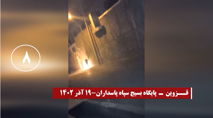 قزوين- إضرام النار في قاعدة الباسيج التابعة للحرس الإيراني