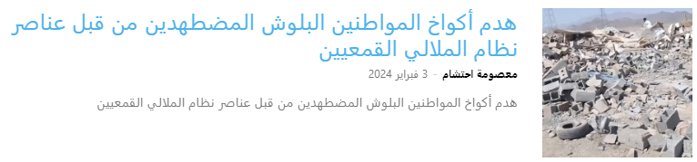 كما اقتحم عناصر خامنئي الإجراميون قرية أحمد أباد في منطقة رامين في تشابهار صباح يوم الأربعاء 31 يناير بعشرات المركبات العسكرية، ودمروا أكواخ وبيوت المواطنين البلوش المضطهدين.