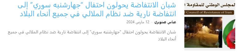 تزامنا مع الحملة الوطنية لـ “جهارشنبه سوري“، قام شباب الانتفاضة بـ 10 عمليات يوم الثلاثاء في طهران وأصفهان وقزوين وكرمانشاه وكرمان ويزد وجرجان ودزفول وميانه وجيرفت بإشعال النار في مراكز الباسيج التابعة للحرس وغيرها من منظمات النظام القمعية والمفترسة. يمكن سماع انفجارات من هذه المراكز من مسافة بعيدة.