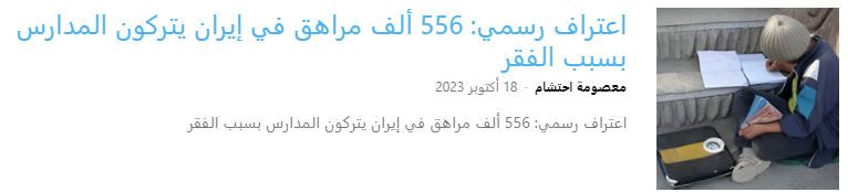 تحدثت وسائل الإعلام الحكومية في إيران عن زيادة ترك المدارس في نفس الوقت الذي زادت فيه الفقر، وقالت إن التسرب من المدارس والفقر لهما علاقة كبيرة، وأنه في العام الدراسي الحالي، ارتفع معدل تسرب الطلاب في جميع مراحل التعليم.