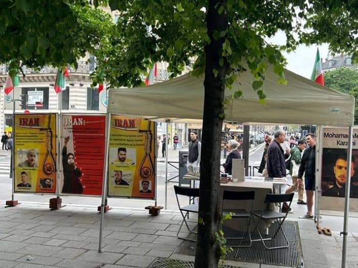 أقام أنصار منظمة مجاهدي خلق الإيرانية وأنصار المقاومة الشعبية الإيرانية يوم الأربعاء 8 مايو معرضا لصور الشهداء وطاولة كتب في وسط مدينة باريس تكريما لشهداء الانتفاضة الوطنية في إيران.