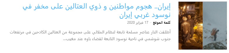 ومع مرور أسبوع واحد فقط على حلول العام الجديد في إيران، بدءًا من 20 مارس/آذار 2024، لقي اثنان من العتالين في الجزء الغربي من البلاد حتفهما بسبب إطلاق النار والبرد؛ هدية رأس السنة من النظام الإيراني للمواطنين الكرد، والمذابح المستمرة للعتالين مستمرة.