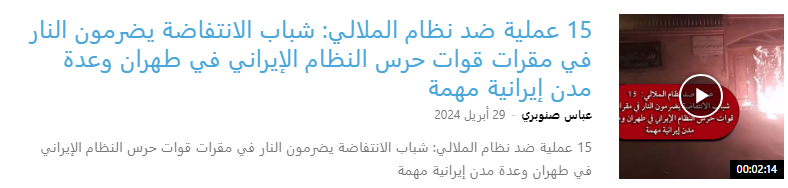 خلال الأيام الماضية، قام شباب الانتفاضة في مدن مختلفة من إيران، من العاصمة طهران إلى زاهدان في الجنوب الشرقي، ومن الأهواز وأنديمشك في الجنوب الغربي، ومن مشهد في الشمال الشرقي إلى تبريز في الشمال الغربي، وهمدان وكرمانشاه في الغرب، باستهداف مقرات البسيج والحرس وإضرام النار فيها.”
