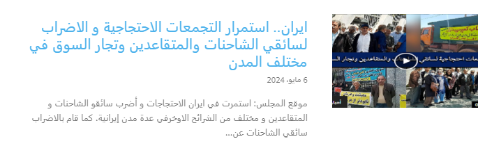 تواصلت يوم الاثنين الموافق 6 مايو/أيار 2024، الإضرابات والتجمعات الاحتجاجية لسائقي الشاحنات وتجار الذهب في عدة مدن إيرانية، احتجاجًا على القوانين التي وصفوها بالجائرة من قبل النظام الإيراني. في المحطة الحدودية مهران على الحدود مع العراق، نظم سائقو الشاحنات الثقيلة تجمعًا احتجاجيًا، بينما في مدينة فسا بمحافظة فارس جنوب إيران، أضرب سائقو الضغط ونظموا تجمعًا احتجاجيًا.