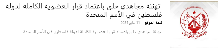 • هنأت منظمة مجاهدي خلق إيران الرئيس محمود عباس، حركة فتح، منظمة التحرير والشعب الفلسطيني على الموافقة على قرار عضوية دولة فلسطين الكاملة في الجمعية العامة للأمم المتحدة.