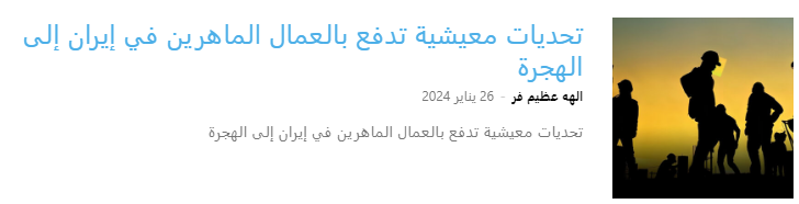 في 7 مايو 2024، كتب موقع بهار نيوز: “يفكر المهنيون الطبيون في إيران في الهجرة بسبب انعدام الأمن الوظيفي والضغوط الثقافية. العمال الإيرانيون في العراق، على الرغم من التحديات الصحية، يكسبون ضعفي ونصف الراتب الذي يتقاضونه في إيران، مما يدفع الكثيرين إلى البقاء في العراق. لقد أصبحت إحصاءات الهجرة المتزايدة قضية أمنية، حيث منعت الوكالات الحكومية من نشر هذه الأرقام لتجنب الآثار السلبية.