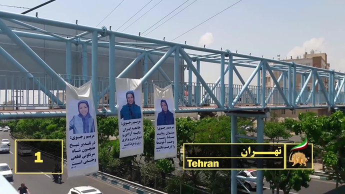 علق أعضاء وحدات المقاومة في طهران العاصمة وعشرات المدن الأخرى في إيران صور ولافتات تحمل صور السيدة مريم رجوي الرئيسة المنتخبة من قبل المجلس الوطني للمقاومة الإيرانية.