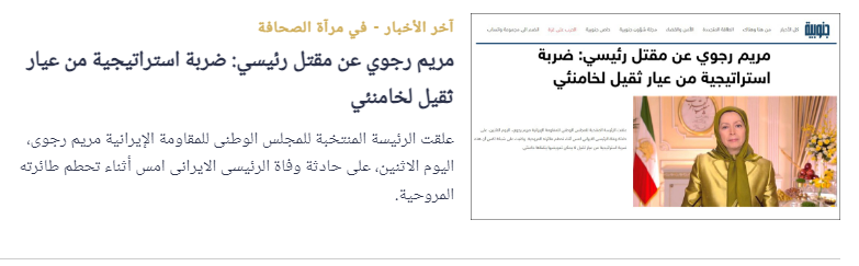 في الوقت الذي أعرب فيه الشعب الإيراني وشعوب دول المنطقة، بما في ذلك في غزة وسوريا ولبنان والعراق، عن سعادتهم بهلاك إبراهيم رئيسي ووزعوا الحلوى بهذه المناسبة، فإن تعازي مختلف المسؤولين الموجهة لنظام الملالي مخزية وتدوس على دماء أولئك الذين لعب إبراهيم رئيسي مباشرة دورا حاسما في اغتيالهم، وكان إبراهيم رئيسي أحد أعضاء لجنة الموت في طهران عام 1988.