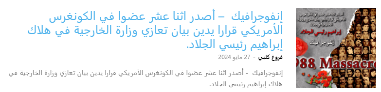 بصفتنا سفراء وخبراء ومسؤولين حاليين وسابقين في الأمم المتحدة، نشعر بقلق عميق إزاء التكريم المزمع للجمعية العامة في 30 أيار/مايو 2024 للرئيس الإيراني إبراهيم رئيسي، الذي قتل في حادث تحطم طائرة هليكوبتر في 19 أيار/مايو 2024.
