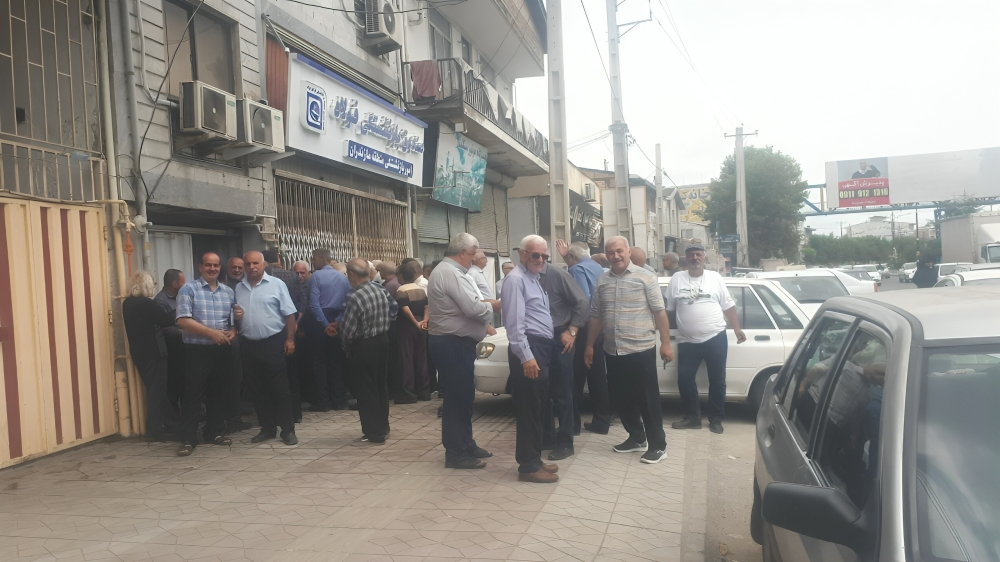 كما تجمع مجموعة من المتقاعدين من صناعات الصلب “البرز المركزي” في محافظة مازندران أمام صندوق تقاعد الصلب لهذه المحافظة.