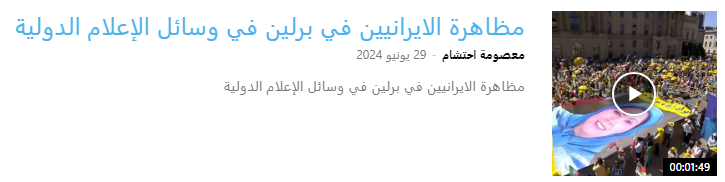 - بعد يوم من الانتخابات الرئاسية الإيرانية، دعا المتظاهرون في برلين إلى الحرية لإيران، حسبما ذكرت وكالة الصحافة الفرنسية. تم تنظيم المظاهرة من قبل المجلس الوطني للمقاومة الإيرانية (NCRI).
