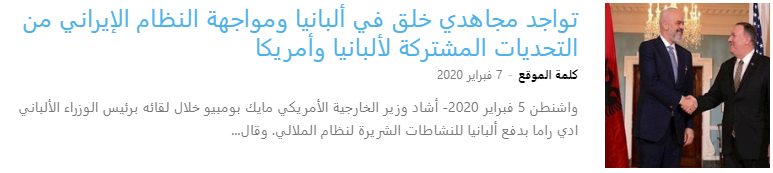 “تم كشف شبكة إرهابية يقودها النظام الإيراني في ألبانيا. كان الهدف من هذه الشبكة هو تنفيذ هجمات على حركة المعارضة الإيرانية (MEK).