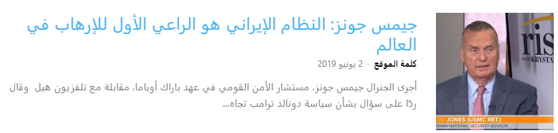 جيمس جونز: أعتقد أن هناك اعتقادا خاطئا بأن هناك احتمالا بأن يرى النظام الإيراني النور بطريقة ما ويوقف ما يفعله فيما يتعلق بالرغبة في امتلاك قدرات أسلحة نووية.