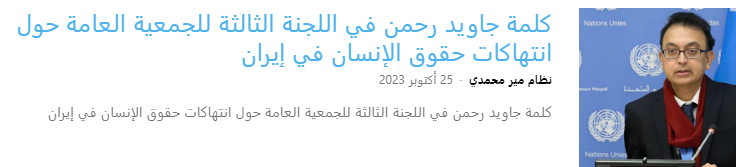 وأعلنت مفوضية الأمم المتحدة السامية لحقوق الإنسان في بيان لها عن تقرير جاويد رحمن بعنوان «إيران: يجب التحقيق في الجرائم الوحشية ومحاكمة مرتكبيها».