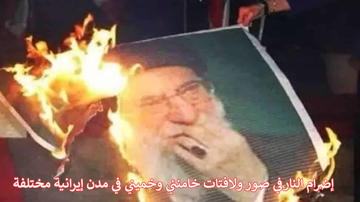 إضرام النارفي صور ولافتات خامنئي وخميني في مدن إيرانية مختلفة